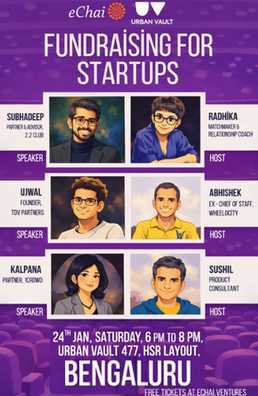 On 24th January, I’m excited to join the eChai Ventures Fundraising for Startups gathering at Urban Vault, HSR, where the focus goes beyond pitch decks and valuations to real conversations and shared learning.